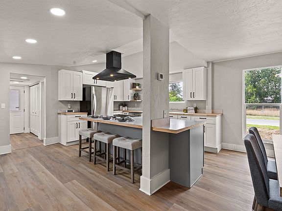 You'll feel at home as soon as you step inside this newly renovated 3-bedroom, 2-bathroom farmhouse. Every detail has been accounted for to ensure you have a safe and lovely place to call home. Not only will you benefit from the craftsmanship that went into the structural revival of this gem (new roof, plumbing, windows, bathrooms, flooring, etc.), but also the thoughtful design of the inviting floor plan that seamlessly integrates the open kitchen, informal dining, and living areas that will inspire you to have gatherings and conversations. The bright and stylish kitchen has a classic island configuration that maximizes workspace and flexibility. The main-floor primary bedroom is a roomy launch pad for the day, with the convenience of a private bathroom. The other 2 quiet bedrooms are on the second floor. The expansive yard is an open space for you to do as you please. Vast parking space with ample driveway that leads to an oversized 2-car garage. Located within minutes of lakes and nature. See it today!