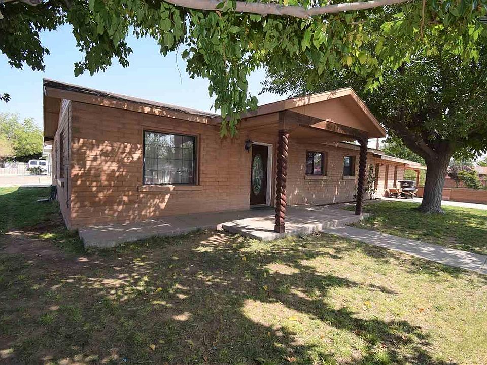New Stainless Steel Appliances! 4 Bedroom 2 Bath Brick home on large corner lot. This beautiful property features 1,973 Sq. Ft, an open eat in kitchen with breakfast bar, new carpet and tile flooring, refrigerated air, large master bedroom with spacious spacious walk in shower, patio doors lead to the covered patio, fenced yard, desert & conventional landscaping, mature trees, storage shed, room for RV Parking, close to schools, a must see! Call Eva Luna, Broker575 494-0969 to schedule your private viewing!