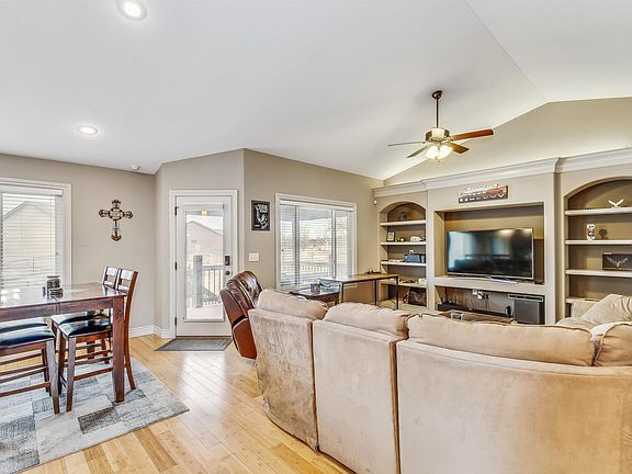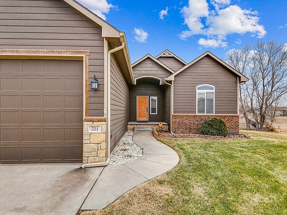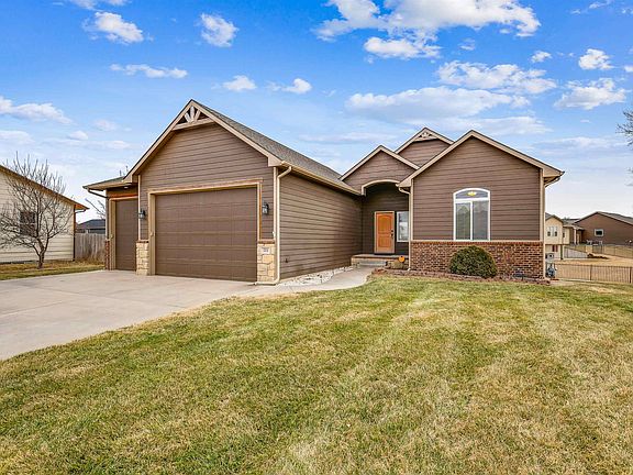 Beautiful 4 bedroom, 3 bath Ranch Home in the desirable Goddard school district. Check out the finished 3-car OVERSIZED GARAGE that features 10' high garage doors (easily will fit RV and/or LIFTED TRUCK!!) 32' deep, LED lighting throughout, hot and cold water, and also has two 240 outlets...This is any Car Enthusiasts Dream!! If the garage is this nice just imagine the rest of the home starting with a Large entryway and Open Floorplan, HUGE 14ft CEILINGS, Open kitchen concept w/eating and hearth area & Granite Countertops throughout. Primary Suite also has huge vaulted ceilings and luxury bath with dual sinks, granite countertops, soaker tub and separate shower. Main floor laundry ; ) Full finished view-out basement has a Large Family/Rec room, 2 more bedrooms and full bathroom. Covered deck with composite decking, overlooking beautiful lake views.