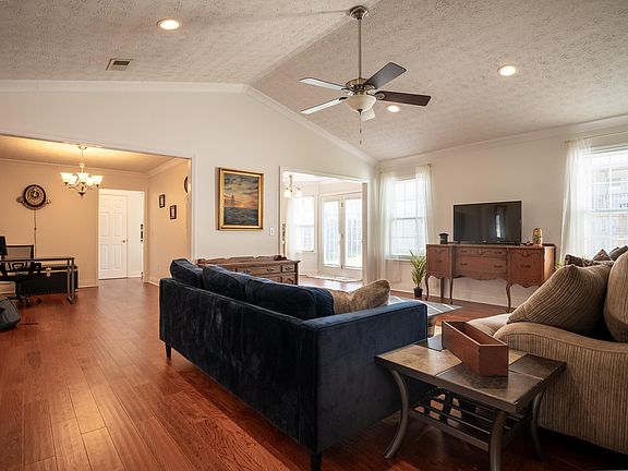 Home sweet Home! Don't let this one pass you by. This home features 3 bedrooms, 2 full baths,spacious living room with vaulted ceilings, dining room, beautiful kitchen with granite tops, tile backsplash, stainless appliances, and a wet bar with additional sink. Nice primary suite offering both walk-in shower and jetted tub. The home also has a floored attic space and a pull down steps in garage and a nice large patio out back and fenced yard! Home includes the Nest Bluetooth for the heating and AC. Call for appointment this one will go fast!!