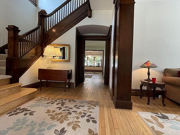 This property has it ALL! Convenient LOCATION! Great schools! Huge flat yard!Oversized 3 car garage with parking pad! Stepping into this beautiful home, you will immediately notice the charm with the original hardwood floors, crown molding and TALL ceilings! This spacious 4-5 bedroom home has 2 living rooms,a formal dining room, kitchen and full bath on the first floor. 4 bedrooms, a full bath, and a HUGE laundry room on the second floor!There is a possibility of a 1st floor bedroom! The attic is ready for plenty of storage! This property consists of 2 lots and also hosts a duplex that has GREAT RENTAL history!A large wrap around porch in the front and a nice entertaining space in the back!
