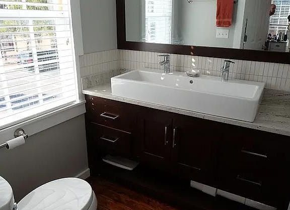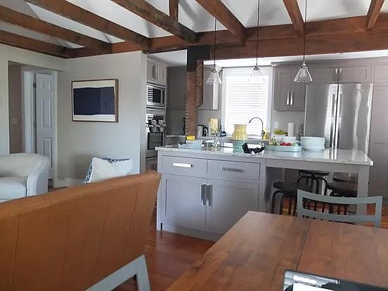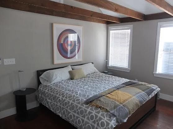 221 West is a lovely, loft apartment located in the heart of downtown Beaufort. Original hardwood floors, wood beams and brick facades have been brought to life again by a recent restoration and complemented by granite countertops, a full kitchen, and washer dryer. Furnishings exude a modern flair and trendy contrast within the historic loft. The master bedroom boasts a king bed, en suite bathroom with bathtub, and walk-in closet. The second bedroom is perfect for another couple or children with its access to a second bathroom. Tenant pays utilities. Minimum one year lease. No smoking.