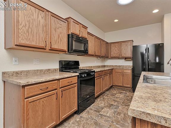 Welcome Home to this beautifully cared for 3 Bedroom 2 Bath ranch style home on a corner lot. Single story home with no stairs except a few leading to the 2 car garage. Wide open floor plan with amazing kitchen including gas stove, LG refrigerator, dishwasher, and plenty of cabinet space along with a unique river rock breakfast counter. Enjoy the expansive space in the living and dining rooms. Notice the wonderful natural light from the added skylights in front foyer and kitchen along with ceiling fans in every room. Charming wood laminate floors throughout most of the home. Full size laundry room with GE washer and dryer included. There is also a warm touch of style added with decorative barn doors leading to the fully remodeled master bathroom, and the welcoming back yard. Relax during summer evenings or cool mornings on the gorgeous deck protected by a covered pergola. Huge back yard boasts of an enclosed privacy fence while providing plenty of space. Doggie door also installed. The exterior of the home was recently painted in 2024 and has a security storm door in addition to the front door. Arlo security cameras installed on front porch and back deck along with motion lights around the home. Owner also took great care by adding a sump pump and a radon alimentation system for peace of mind. Approximately 25 minutes from Denver, close to shopping, schools, park and playground, local farms, and I-76 and US 85 freeway access. Schedule your showing today!