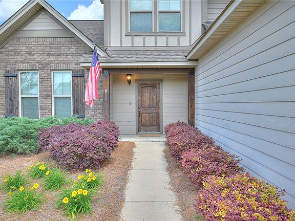 Beautifully maintained w/ standout curb appeal, this lake lot offers a rare combination of comfort, function, & outdoor living! Enjoy zero-step entry & an incredible gameday porch w/ wood ceiling, woodburning fireplace, gas grill hookup, & extended patio overlooking a large fenced yard backing up to green space & 1 of 2 neighborhood lakes! Inside, multiple living spaces include a soaring two-story great room, sunlit keeping room, & upstairs loft. Chef's kitchen features ceiling-height cabinetry, tile backsplash, undercabinet lighting, pantry, raised breakfast bar. Primary suite includes a luxurious bath w/ double sinks, tile/glass step-in shower & relaxing soaking tub. Upstairs bedrooms share a hall bath w/ double sinks. Tankless water heater. Double garage. Minutes from Chewacla State Park, Ward Bike Trail, Lake Wilmore Rec! Mimms Trail amenities include community gardens, miles of sidewalks/paths, & sparkling zero entry pool! Convenient to I-85, Auburn University, & downtown Auburn!
