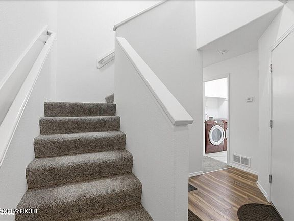 Minutes from JBER and move-in ready, this 3-bedroom, 2.5-bath townhome features recent updates including fresh paint, newer flooring, & a new dishwasher. The bright, open living room is enhanced by vaulted ceilings, while the large primary suite offers a private bath and walk-in closet. Situated on a corner lot with a spacious fenced yard, this home also provides mountain views & easy commuting.