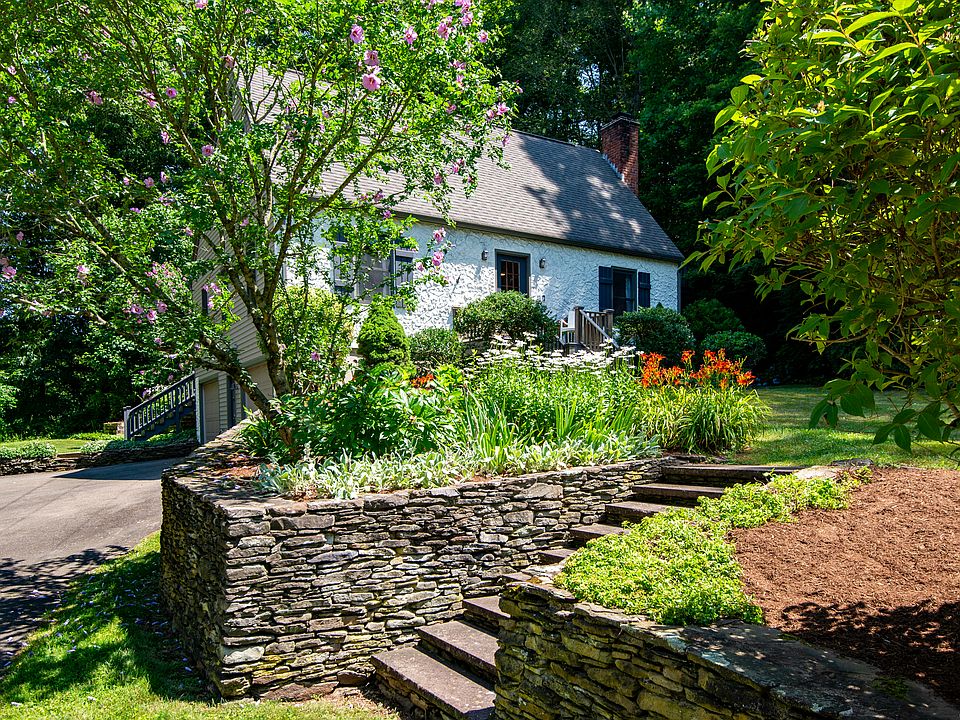 A drive-by does not tell the whole story! Sweeping front lawn, lovely plantings, charming cape. Then, this home opens to stunning, bright, open modern spaces. A large welcoming family room with gleaming wood floors and a fireplace flows to the dining room. French doors out to the private deck. A sunny, updated kitchen with granite counters, stainless appliances and a breakfast bar. The expansive primary bedroom features a cathedral ceiling, exposed beams, and a ceiling fan - and opens to the private balcony beyond. Two other bedrooms complete the second floor. The lower level offers the laundry room, utility/workshop area, and garage space. Situated on a quiet cul-de-sac, the property is only a few miles from commuting routes, shopping, restaurants etc. and four miles from the Guilford green and all the town center has to offer.