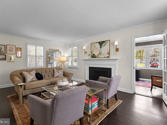Welcome to 221 Williamsburg Drive—an architect-designed and thoughtfully expanded colonial-style home offering over 3,400 square feet of beautifully finished space, situated on a rare double lot on one of Woodmoor’s most picturesque, cherry tree lined streets. Step through the front door into the formal living room, where crown molding and a wood-burning fireplace create an elegant and inviting space. Just off the living room is a charming library/den with views of the side yard. .The dining room features timeless wainscoting & recessed lighting, offering a warm and polished setting for hosting.Flowing from the dining room is the heart of the home—an open-concept kitchen and family room with soaring 10-foot ceilings and walls of windows that fill the space with natural light. The chef’s kitchen includes marble countertops, white wood cabinetry, top-of-the-line stainless steel appliances, and a full butler’s pantry wall. The kitchen opens seamlessly to the family room, where an antique mantel and gas fireplace anchor the space, and oversized windows overlook the grassy front yard.Also on the main level: a convenient mudroom and powder room. Upstairs, you’ll find four generously sized bedrooms, two full bathrooms, and a convenient laundry room. The primary suite offers a serene retreat with a spacious walk-in closet and a beautifully appointed en-suite bathroom featuring double sinks and elegant finishesThe fully finished lower level adds even more versatility with a second family room, a full bathroom, and direct access to the backyard—a perfect space for guests, hobbies, or play. Living in Woodmoor means more than just owning a beautiful home—it means being part of a vibrant community. The Woodmoor Citizens Association hosts holiday celebration such as the Christmas tree and menorah lighting ceremony, 4th of July parade, Oktoberfest and the beloved Woodmoorstock music festival. Plus, you’re just a short walk to Woodmoor Shopping Center, public transportation, and all the conveniences you need.