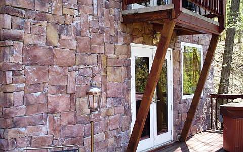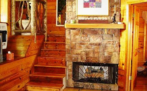 THREE MINUTES TO HOSPITAL ,5 MIN. TO TOWN! BIG hot tub on the view deck.Fully furnished CABIN FOR RELAXING! This Poly-Steel structure is concrete covered mostly with stone. Wood tongue & groove walls and pine floors upstairs and down. NEW PRICE REDUCTION AS OF MARCH 1, HURRY WITH YOUR BUYERS!!
