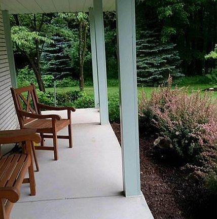 A hidden treasure in Wadsworth township in the heart of Wadsworth! Nestled on 7.8 wooded acres this home is totally surrounded by a park-like setting! This 3-4 bedroom colonial offers 2375 sqft of living space and has a 1st floor bedroom and 1st floor laundry. Kitchen is fully applianced and upgraded in 2023 with beautiful quartz countertops! 2 baths have granite tops with more tiled walls. Huge living and dining /great room with lots of windows with views of the wooded landscape. Private deck off master suite. Open study which could be extended to outside wall if desired. Alternate exterior wood boiler heat system is in additional to gas furnace. Got to experience this spectacular haven complete with decks, wraparound porch, hot tub, pool and serenity. Desired perennials, bushes and trees all with distinct positioning by landscape architect.