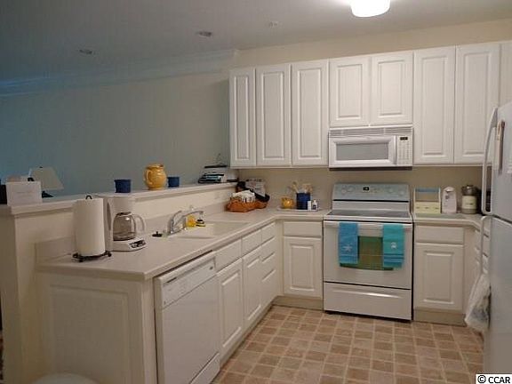 A Resort Lifestyle can be yours in this 2Bd/2Ba in prestigious golf community of Crow Creek. Elevator for easy access to your 2nd floor unit. You'll feel right at home - the interior is open, bright & comfortably furnished. Relax on your screened-in or open porch with a view of trees. Enjoy Southern hospitality & a maintenance-free lifestyle for primary or vacation home. For your pleasure: 6 miles of gathering trails' for walking & biking; 2 superb clubhouses w/ wireless internet access; zero entry outdoor swimming pools plus an indoor pool; Jacuzzi; tennis courts; state of the art fitness center (both strength & cardio); game rooms w/ pool and card tables; lounge areas w/ big screen TV & fireplace. Strategically located between Wilmington NC and Myrtle Beach SC. 5 minutes to pristine beaches, dining, and shopping. Tee off at Crow Creek or one of the myriad of other fine golf courses. The only thing missing is YOU, your clubs, racquets, swim suit & tooth brush. Home Warranty.