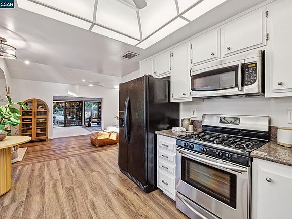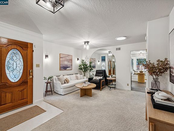 Welcome to your hilltop retreat in one of Martinez's most sought-after neighborhoods! Available for the first time in over 45 years, this thoughtfully designed 3-bedroom, 2-bath home combines comfort, privacy, ample square footage, and exceptional indoor-outdoor living. An inviting family room with vaulted ceilings & fireplace seamlessly transitions into a great room, featuring a full wall of sliding glass patio doors that open to a private backyard paradise with a sparkling pool, gazebo, lounge deck, and cozy fire table – perfect for poolside gatherings and starlit evenings. Inside, generous living spaces flow effortlessly with an updated primary suite boasting a vaulted ceiling & heated bathroom tiles for ultimate comfort. A dedicated office, illuminated with natural light and intelligently equipped with several electronic skylights, provides an inspiring work-from-home retreat. Don't miss the chance to experience leisurely living with all the amenities your family desires.