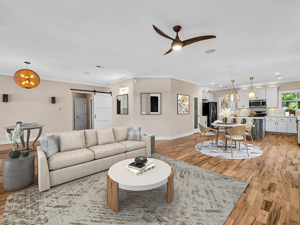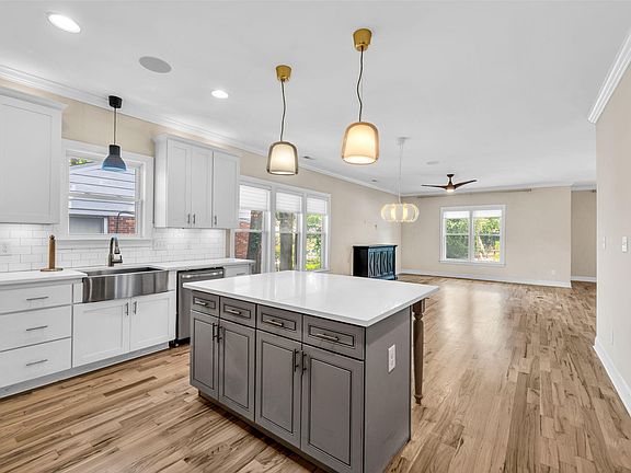 NEWLY refinished hardwood floors throughout! Unbeatable location— across from Village District, walking distance to restaurants and shopping! This beautifully renovated home is perfect for entertaining!! Renovations completed (2016) and offers an open, light-filled floor plan that shows like a model. Enjoy 9-ft ceilings, a gourmet kitchen with quartz countertops, custom cabinetry, a gas range, huge island, and designer lighting. Modern touches throughout include barn doors, crown molding, wall sconces, in-house speakers, custom blinds, and a security system. The spacious primary suite features a walk-in closet, double vanity, and a large walk-in shower. Flexible 3rd bedroom with built-in Murphy bed and desk. Outside, wait until you see the renovated shed turned into bar and maintenance free front yard! Relax on the screened porch, enjoy the fenced yard, tree fort, and two tranquil water features. Plus, a mudroom, large laundry room, and tankless water heater round out this exceptional home! Minutes from Pullen Park, Glenwood South and NC State.
