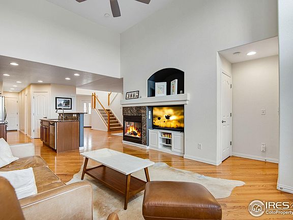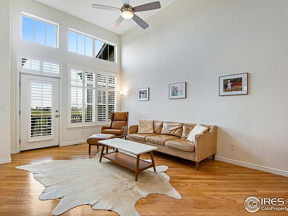 Beautiful, maintenance-free paired home backing directly to Ute Creek Golf Course! This well-maintained home offers spacious main-floor living with vaulted ceilings and abundant natural light. The main level features a generous primary suite with an ensuite and walk-in closet, a laundry room, and a dedicated office with custom built-ins. Upstairs includes two large bedrooms and a versatile loft-perfect for hobbies or a second workspace. A large unfinished basement with 9' ceilings offers excellent storage or future expansion potential. Recent updates include a sleek new induction range, upgraded ceiling fans and light fixtures, and new flooring in the primary bedroom. Enjoy peaceful evenings on your private, protected deck with serene golf course views. HOA covers exterior maintenance, lawn care, snow removal, trash, water/sewer, common area upkeep, and hazard insurance-offering truly low-maintenance living. Conveniently located with quick access to I-25, this is a perfect lock-and-leave option in a desirable neighborhood-offering comfort, quality, and convenience all in one.