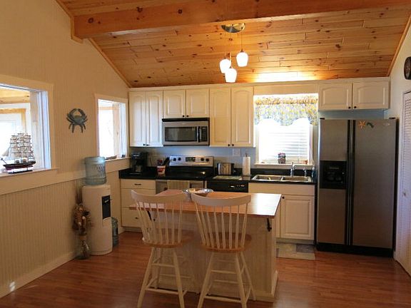 Awesome Cottage Style Waterfront Home just tastefully renovated top to bottom with really nice features: Stainless appliances, Granite Counters, Sunroom/Greatroom on waterside, new flooring, ceiling fans, vinyl siding, new windows, crown molding, vaulted ceilings, custom lighting, exposed Knotty pine Beams, large deck overlooking water, outdoor shower & more. On a fantastic Waterfront parcel with beautiful landscaping, mature shade trees, a large pier with boat lift, bulkheading & AMAZING VIEWS!