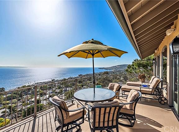 Capturing Laguna's panoramic coastal shoreline and city lights views from both inside and out with generous double doors and windows, spacious private decks, courtyards, and gardens where you can soak up the sun, enjoy the scenery, relax, and entertain. Significantly remodeled in 2001, this private residence rests on two lots and is in immaculate condition! Upstairs on the main level, is an open living room and formal dining area with a stone fireplace, vaulted ceilings with hand-hewn beams, gorgeous wide plank hardwood floors, a chef's kitchen with stainless steel appliances, and a guest powder room. The second level includes a luxurious master suite with a sitting area, fireplace, a deck, and views. Also, a second bedroom en-suite opening to a beautiful courtyard, a wine cellar, laundry room, and a built-in office. The lower level boasts a family/TV/game room with fireplace and a third bedroom en-suite all with double doors opening to a private deck and walkways to the gardens and courtyards. Features an attached 2-car garage with room for 2 more cars in driveway. And, 4 marked public street parking spaces next to driveway. This property includes two street-to-street lots with total privacy, lush mature landscaping, and endless possibilities. A very special property to call home!