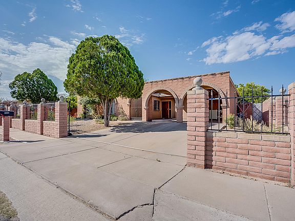 Wonderful Adobe ranch-style home with many amenities, featuring spacious bedrooms, NEW A/C, dual cooling (evaporative cooler replaced last year!), wood-burning fireplace, beautifully renovated kitchen, updated bathrooms, and sparkling swimming pool. This home also features wrought iron, secured front yard (wrought iron and block wall combo), extra storage in the back yard, and mature fruit trees.