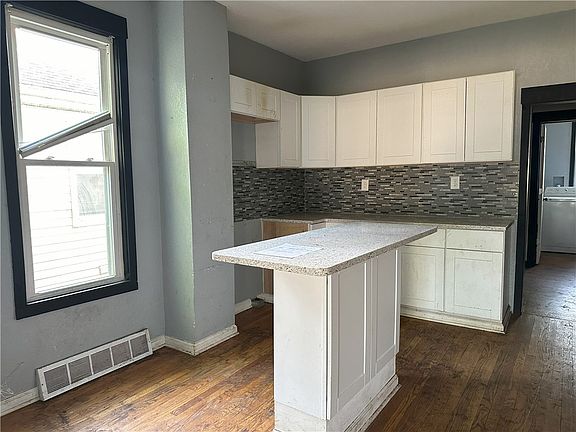 This home has many possibilities for the next buyer. The white kitchen with center island is spacious, 1st floor laundry, 2 bathrooms, office/den area and possibly a first floor bedroom. The upper level has 3 bedrooms, full bath and lots of closet space. The backyard is fenced. Close to many amenities and easy access to downtown and the interstate.
