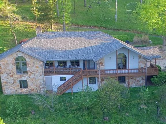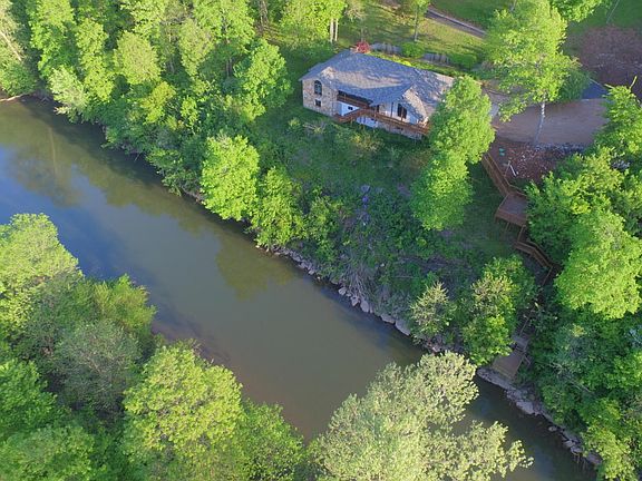 One of a kind view of the James River aprox 1 mile west of the AA Hwy/Hwy 160 intersection south of Springfield. Located on a county maintained dead-end cul-de-sac with a private black top drive winding to this very private river front setting.You have the unique opportunity to live on the small bluff side of the river, yet be able to walk to the river. Take a moment to walk on the elevated deck system & then explore the steps down to the river landing deck. Upstairs is an office & downstairs there is a potential 4th br and an unfinished mechanical room with a ground source heat pump(09).Main level offers a wide open family room-formal DR-kit area and 3 br's all w/ private baths.32x26 shop on the right as you enter the driveway is subjects.New $20,000 state of the art septic system 2016.