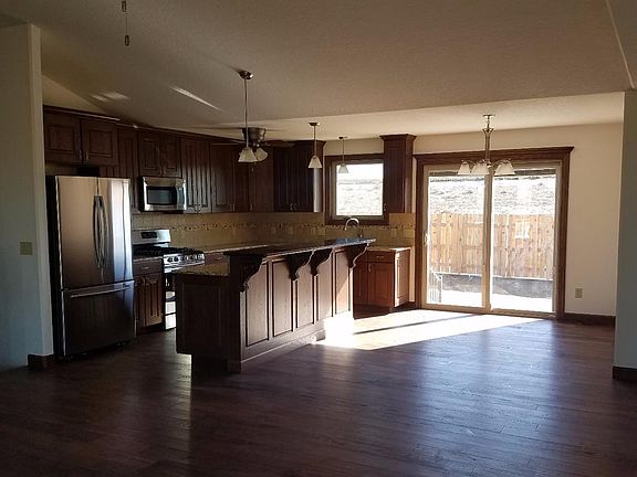 Beautiful new construction with details galore! Custom wood staircase, open floor plan, granite counters, wood floors, possibility of 5 finished bedrooms and 4 baths. Sprinkler system, lawn, landscaping, storage building on concrete slab. 2 furnaces and 2 air conditioners. Huge finished garage with finished storage space. Look out family room windows. Custom cedar fence. Solar lighting.