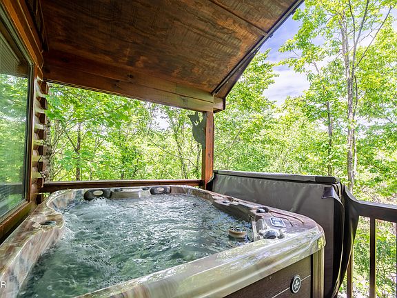 Rental Income- $20, 000+ annually over5 year period. Close proximity to all attractions in Pigeon Forge. One level log home in resort community. Spacious master suite w/ jetted tub, covered deck w/ hot tub, roomy great room & kitchen. Subdivision has a clubhouse, IG pool, convention/wedding/ rec area. DIR:Veterans Parkway, Left on McCarter Hollow, bear Right on Newcomb Hollow to Hidden Springs Resort, go through gates, immediate Right on Hidden Springs Way, bear Left on Raccoon Den Way, Left on Hawks Point Way, house on Right
