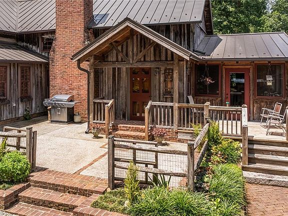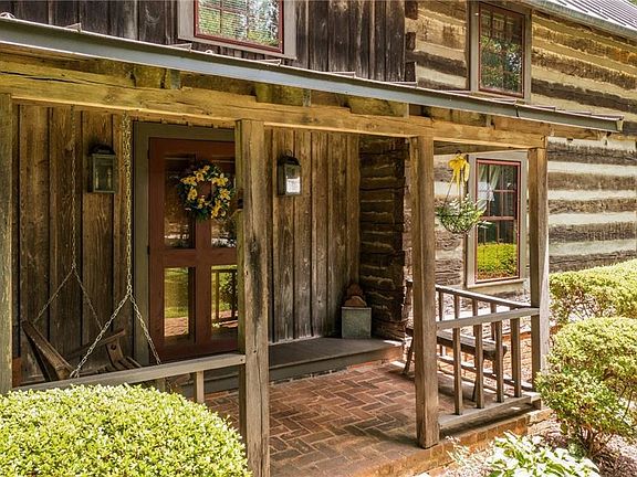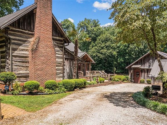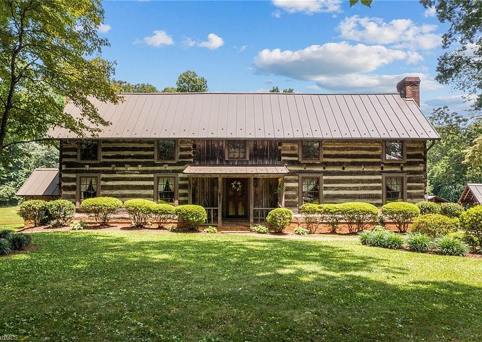 Stunning 1840’s original hand-hewn log home. Home was disassembled numbered & moved to its current location in 1976. Attention & detail was taken in all aspects of this home from old hand cut glass in log section windows to original era hand forged door hinges & locks. Home displays original heart pine floors, hand hewn heart pine beams & sits on 14.46 acres w/a beautiful view of almost 2-acre pond. Downstairs includes Dining, Den, Kitchen w/Old Carolina brick herringbone floors, Sunroom,3 beautiful wood burning fireplaces, primary bedroom, primary bath w/heated floors, his/her closets, built in dressers, vanities & laundry room, 2nd downstairs bedroom w/full bath. Kitchen has large center island w/lots of storage, gas cook top, walk-in pantry, Old Salem punched tin cabinetry & lighting fixtures. Property features fruit trees, grapes, blueberries, heated dog lot, hot water wood stove, 3 car carport, log barn (potential 2nd home) workshop, copper gutters & other attentions to detail.