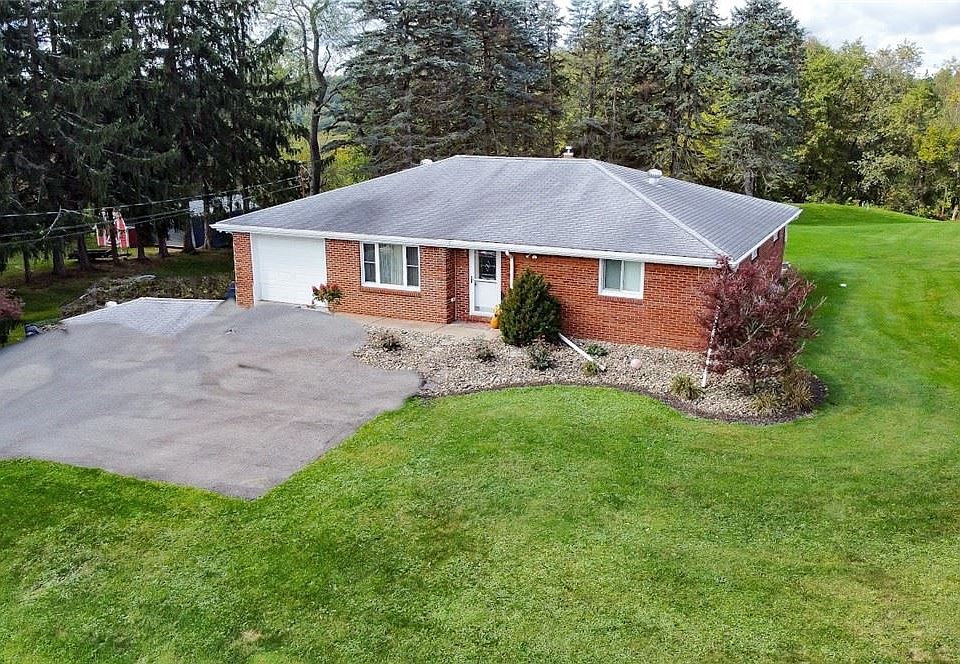 Exquisite brick ranch nestled on level lot of nearly an acre. Pristine is the condition you will find upon entering. Open floor plan, living room with gleaming hardwood floors, eat in kitchen has Corian countertops and stainless steel appliances. First floor laundry room, sun room overlooking the private back yard. One stall attached garage and a one stall carport.