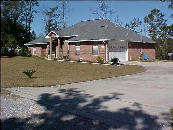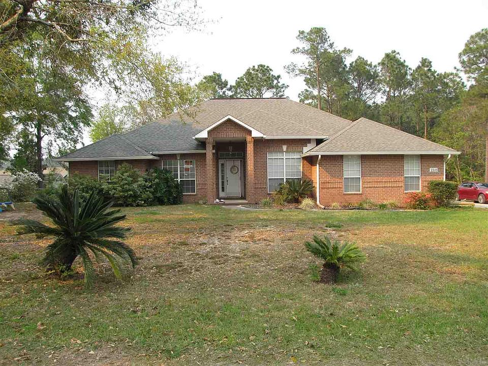 Beautiful custom built all brick 4-bedroom 3-full bath home located on 1.4-acres. The home is set back in a neighborhood on a private road that feels like you are living in the country. Features include a formal dining room and a large open eat-in kitchen with a stainless-steel refrigerator and gas range. The home office and dining room has newly added wood looking vinyl flooring. Both guest bathrooms have updated tile flooring, and the home has a newly installed water heater. The master bedroom & living room provide easy access to the large covered patio that looks out to a pond. Located on the property is a two-story building that includes electric next to an above ground pool. The property also has a large detached workshop. The home is conveniently located less than 15 minutes from Navy Federal and 30 minutes to NAS and Pensacola Beach.