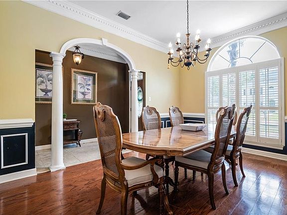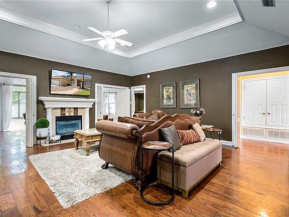 Fantastic location close to shopping, a bank, restaurants, WalMart, and the new Publix, this three sided brick home is located on a fenced cul-du-sac lot and is in the Baker school district. When family and friends arrive, greet them in the spacious tile floored foyer and if entertaining is on the menu, the formal dining room is just to the left where festive meals can be lingered over and enjoyed. Straight ahead in this open floor plan home is the great room with hardwood flooring, a turtle back ceiling, recessed lighting, and a majestic gas log fireplace, great for those rare cool Southern evenings. With a large screen television mounted above the fireplace (TV does not remain), the assembled group of family and friends can enjoy the game. Double doors lead to a "sunroom" that has a window unit but stays comfortable with just the doors open from the house. This room can be used for whatever the family needs dictate - a recreation room, a playroom, an additional sitting area (if someone isn't interested in the game) or a home office. Just to the left of the great room is the breakfast area where casual meals can be served while events of the day can be discussed. All that separates the breakfast area from the kitchen is a step-up breakfast bar where morning coffee or snacks can be consumed while chatting with whomever is in the kitchen. Stainless appliances, a beautiful vent hood, a gas range with double ovens, lots of granite counterspace, pretty white cabinetry and a pantry make this kitchen a great place for the chef of the family to perform their magic. Just off the kitchen is a mud room/drop zone area and spacious laundry room, more storage and access to the double car garage. At the head of the garage is a bonus area - an excellent place for a workshop, mancave, or craft room. When the day is done, retreat to the primary bedroom in this split bedroom home. Tile floors, a raised ceiling, and massive walk-in closet will impress. The attached primary bathroom has a granite topped double vanity, known to save marriages, a walk-in shower--making getting ready in the morning a breeze, and a jetted garden tub to soak away the stresses of the day. There are three additional guest bedrooms and a guest bath convenient to the bedrooms as well as for use by visiting family and friends. This home also features a massive screen porch located beyond the "sunroom" where evening barbeques or additional entertaining can take place. It is also a fantastic place to just relax with a glass of tea at the end of the day while watching the sunset. The backyard is privacy fenced and provides an air of seclusion. Don't miss this wonderful home and be prepared to make 2210 Irongate your new address.