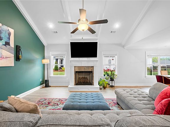 This like-new Kinkade Plan offers 4 bedrooms, 2.5 baths, and over $12,000 in upgrades, all set on one of the best lots in Hidden Lakes with stunning lake views and sunsets. The open floor plan seamlessly connects the kitchen, featuring upgraded countertops, fixtures, hardware, and a farmhouse sink, to the spacious living room and dining areas. The main floor boasts a primary suite with large walk-in closet and shower, a luxurious soaking tub, double vanities and large linen closet. Additionally on the main floor two additional bedrooms, a full bath, and a convenient laundry room are found. Upstairs, a versatile bonus room can serve as a fourth bedroom with half bath, playroom or combined bedroom & office. Leaving little to be desired the outdoor living space on the extended back patio, surrounded by lush landscaping, an aluminum fence, and gutters are found accompanied by the lake view. The lot extends beyond the fence line, offering even more space to enjoy.