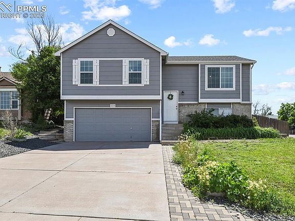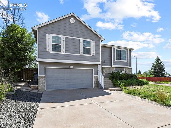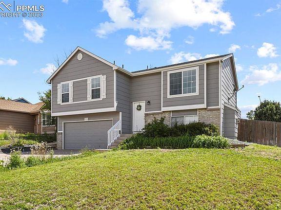 Welcome home to this beautiful home on a large corner lot! Great location close to Peterson AFB and Powers corridor! The Main Level features 3 bedrooms and has stylish LVP flooring throughout Living room, Kitchen, and hallway, carpet in bedrooms. Master Suite has a large closet and attached 3/4 bath. Gorgeous views of Pikes Peak and Front Range from the Living Room! Lower Level offers a large family room for movie nights and/or office space. Beautiful free-standing gas fireplace makes a nice focal point, great for cozy evenings. Oversized garage with workshop and tons of cabinet space! Enjoy your morning coffee and barbeques on the large composite deck and enjoy the newly redesigned backyard with rock, mulch and firepit. Matching Chicken Coop (negotiable) and space for gardening or dog run. This home is move-in ready and waiting for you!