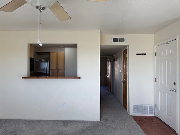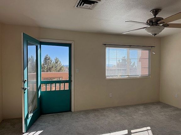 Your next home is conveniently located near the hot tub, pool, and rec facilities generously offered by the HOA. This lovely upstairs one bedroom, one bath is like brand new as it is impeccably maintained. Newer carpeted living area leads to screened door with a deck overlooking bar-be-que area and southern facing sharing views of the Sandias and Sangre glimpses. Stainless kitchen offers some privacy with window open to common area. Stackable washer and dryer tucked behind beautiful wood doors and bathroom refreshingly updated.