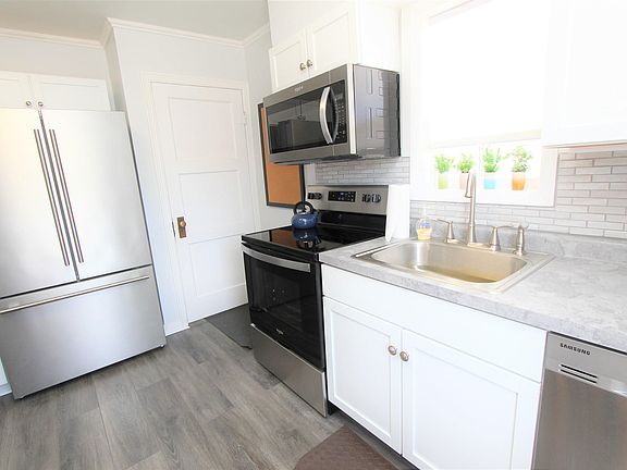 Move-in ready home with 3 bedrooms, 1 full bath, and a full unfinished basement located on a quiet street. A charming foyer leads to the living room with beautiful hardwood floors. Updated eat-in kitchen with white cabinets, stainless steel appliances, stylish backsplash, and low-maintenance vinyl flooring. New HVAC and windows in 2021. Centrally located and close to restaurants, businesses, entertainment, and the Northend Community Center complete with a pool, basketball courts, and an indoor PlayScape.