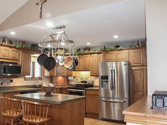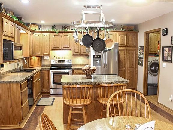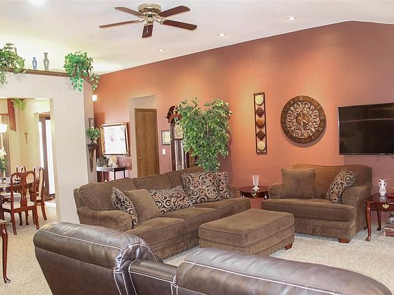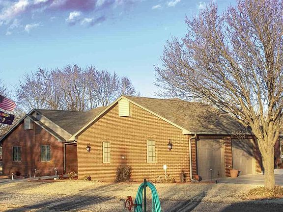 This ALL BRICK zero entry home is Heaven on Earth! It features 2.8 acres with a heated shop, whole home generator, covered patio with a pull down screen hiding morning sun, granite kitchen, pull out pantry drawers, touch-on kitchen faucet, sun room, main floor laundry with half bathroom off of the laundry area, vaulted ceilings, large bedrooms, mature trees, and wildlife visits! This custom home shows pride in ownership and reveals quality craftsmanship. You have the ability to pick your school, public or private. Enjoy the city pool, park, and great food establishments as you make this quiet little town your home.