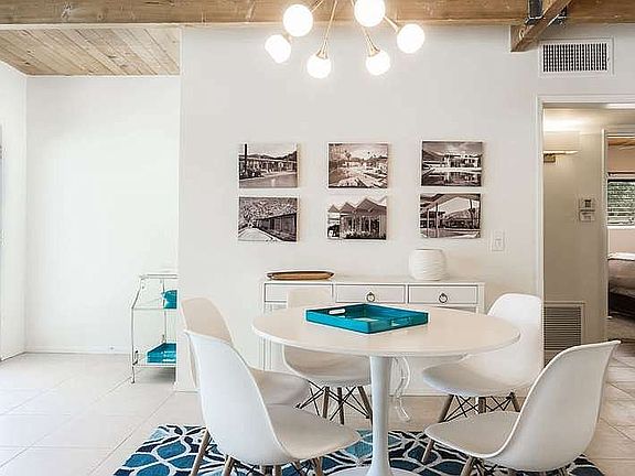 Grab this Meiselman, Mid-Century Modern 3bed, 2.25 bath home. Classic Meiselman design with galley kitchen off living room, master bedroom and guest bedrooms on opposite sides of this home. Current owner has done the heavy lifting on the interior renovation. Sandblasted Tung N' Groove ceilings, clean tile floors, new interior paint, granite counters in kitchen and baths, custom kitchen cabinets, new stainless range, dual pane windows and foam roof complete the upgrades. A large, enclosed garage with quarter bath and closet is accessible via covered walkway and may serve as an office with separate entrance, or game room, or guest room. Desert Scape front yard with circular drive adds to curb appeal. A single car, connected carport is located behind a privacy gate. This is a MUST SEE and will not last long!