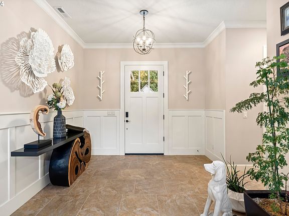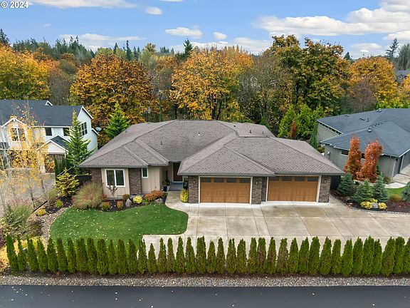Stunning former Parade of Homes residence in a sought-after gated community, where luxury meets comfort in a beautifully designed space. This exceptional 4-bedroom, 3-bathroom home offers an expansive 2,814 Square feet, all on one convenient level. Nestled on an oversized cul-de-sac lot that backs up to serene greenspace, the property provides a peaceful retreat from the hustle and bustle of everyday life. Close to I-5 and I-205 for easy travel being 20 minutes to PDX. Step outside to your private outdoor oasis, featuring a covered patio complete with a built-in gas fireplace, perfect for cozy evenings. The low-maintenance turf backyard is complemented by a custom drip irrigation system and durable Trex composite decking, allowing you to enjoy your outdoor space without the hassle of upkeep. Additionally, the home boasts a 50-year presidential roof and is certified energy efficient ensuring lasting protection and peace of mind. Inside, you’ll be greeted by impressive over 13-foot-high ceilings in the main living area, adorned with elegant crown moldings that add a touch of sophistication. The home is equipped with a state-of-the-art surround sound system, making it ideal for entertaining. The gourmet kitchen is a chef's dream, featuring a 6-burner gas stove, dual ovens, a double drawer dishwasher, a warming drawer, wine cooler, and walk in pantry. Also featuring Fisher and Paykel built in appliances including double refrigerators and freezers---perfect for culinary enthusiasts. Each of the four spacious bedrooms includes a walk-in closet, providing ample storage. The additional ensuite bedroom serves as a mini suite, offering flexibility for guests or family members. Completing this exceptional home is an oversized 4-car garage with an additional workshop area, ideal for all your projects and hobbies. This certified energy-efficient home beautifully combines luxury and functionality, making it the perfect place to call home.