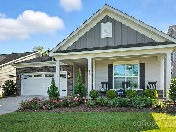 Wow!!! Stunning home located in highly sought after 55+ community with upgrades galore. Nearly new, this home shows like a model home! Open floor plan with elegant light filled living room stone fireplace with raised hearth & painted cedar mantel. Gorgeous chef's kitchen with huge island, pendant lights, quartz countertops, stainless steel appliances, gas cooktop, recessed lights, apron sink & tiled backsplash. Luxurious primary suite with trey ceiling & primary bathroom with ex-large tiled shower, quartz vanities, & huge closet. Split floor plan with two additional bedrooms & full bathroom. Relax in the private treelined backyard oasis with peaceful screened porch & grilling patio with grill with dedicated gas line. Upgrades include epoxy garage floor, drop zone, board & batten walls, trim molding, built in window seating with storage drawers, irrigation system & plantation shutters. Luxury community includes clubhouse, fitness center, resort style pool w/ covered patio, pickle ball courts, social director & lawn maintenance.