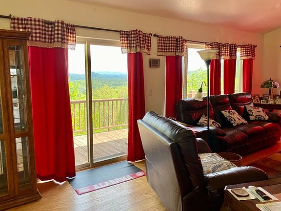 End of road privacy, circular drive & perched on a knoll with OUTSTANDING long range mountain view that is awe inspiring you will find this 2 BR 1.5 BA ranch in Wolf Mountain Estates. Surrounded by 5.36 wooded acres you have the space/area to add a carport or garage & the home has room to grow as well with an unfinished basement with poured foundation walls & plumbed for another BA. Beautiful gas log fireplace, C/H/A, wood floors, all appliances & private well. The gated entrance subdivision provides the security that many second home buyers request & has very nice common areas that includes clubhouse & covered pavilion.
