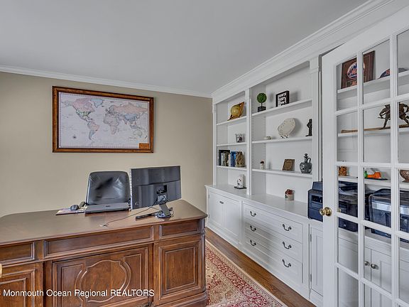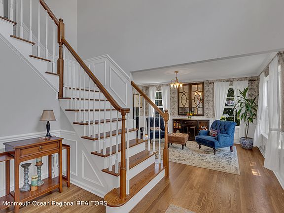 Proudly presenting this spectacular and pristine Center Hall Colonial featuring nearly 2,600 sq ft and a full basement. Inside, you will find the open floor plan is perfect for entertaining and features a newer kitchen with custom white cabinetry, crown molding, stone countertops and a huge center island. Open to the huge great room with a gas fireplace. Gorgeous hardwood flooring throughout. A formal dining room and private office complete the first level. Upstairs, find four spacious bedrooms, the owner's suite includes a private bath with double sinks, soaking tub and shower. Unwind in in your spacious and private backyard and enjoy warm evenings on the oversize deck. Just a few short minutes to the beaches of Spring Lake and robust downtown!