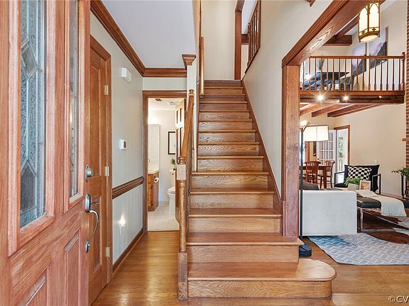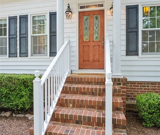 In the lovely Covered Bridge section of Crown Grant, welcome to this very charming & unique Cape Cod gem! This mostly 1st floor living home features 3 bedrooms + loft, with 3 full baths, & spans 2234 square feet of comfortable living space. In addition to the main house, there is a 440 sq ft detached workshop/gym/flex space that has electricity & climate control. From the front entryway, step into the stunning living room with hardwood floors & prepare to be wowed by its cathedral ceilings, accentuated by rustic beams that add character and loads of charm. The focal point is the inviting brick fireplace, which is double sided, perfect for cozy evenings. The living room flows easily to the open dining room & the renovated kitchen which features custom cherry cabinets, quartz countertops, stainless steel appliances, fresh paint, and gas cooking. This setup is ideal for entertaining guests or easy family living. Enjoy the convenience of a 1st floor primary suite complete with a full bath & separate vanity areas, accompanied by 2 spacious walk-in closets, ensuring ample storage space. The high ceilings and charming fireplace enhance this space, making it a true retreat. At the back of the house there is a sunroom with newer windows & a wet bar, offering a tranquil retreat to unwind & enjoy the peaceful surroundings. Also on this level is another bedroom w/ attached full bathroom and laundry/mud room. Upstairs, a sunny loft area, which would make a fantastic home office, connects to a large bedroom with a walk-in closet & full bathroom. Outside, indulge in the huge deck with a gazebo and a well maintained hot tub, overlooking the large private partly wooded lot, which is truly an outdoor oasis. Additional features include a 20x22’ carport, low maintenance vinyl siding, hardwood floors, and proximity to Short Pump's amenities and highly-rated Henrico Co schools. Don't miss the opportunity to make this awesome property your new home sweet home. Love where you live. Book your showing today! Check out video & 3D tour!
