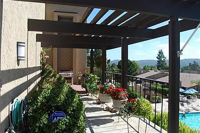 Gorgeous panoramic views & peek of lagoon! Beautifully updated end unit in a gated community. Light & bright with lots of upgrades- engineered Brazilian Cherry wood floors ceramic tiles. Updated kitchen granite counter tops pendant lighting breakfast bar newer appliances & open floor plan. Loft area can be used as an office or family room. Sliders off both living room and dining room areas to balcony. Plantation shutters. Each bedroom has its own patio area.