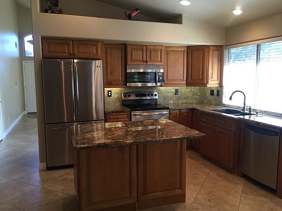 Home has tile through out. Kitchen has custom cabinets with granite counter tops. All bedrooms have wood flooring. Exceptional location in a cul de sac. Back yard is great for entertaining with a fireplace and built in BBQ. Must have a minimum credit score of 640. Tenant must pay for electric, gas, water, and trash.