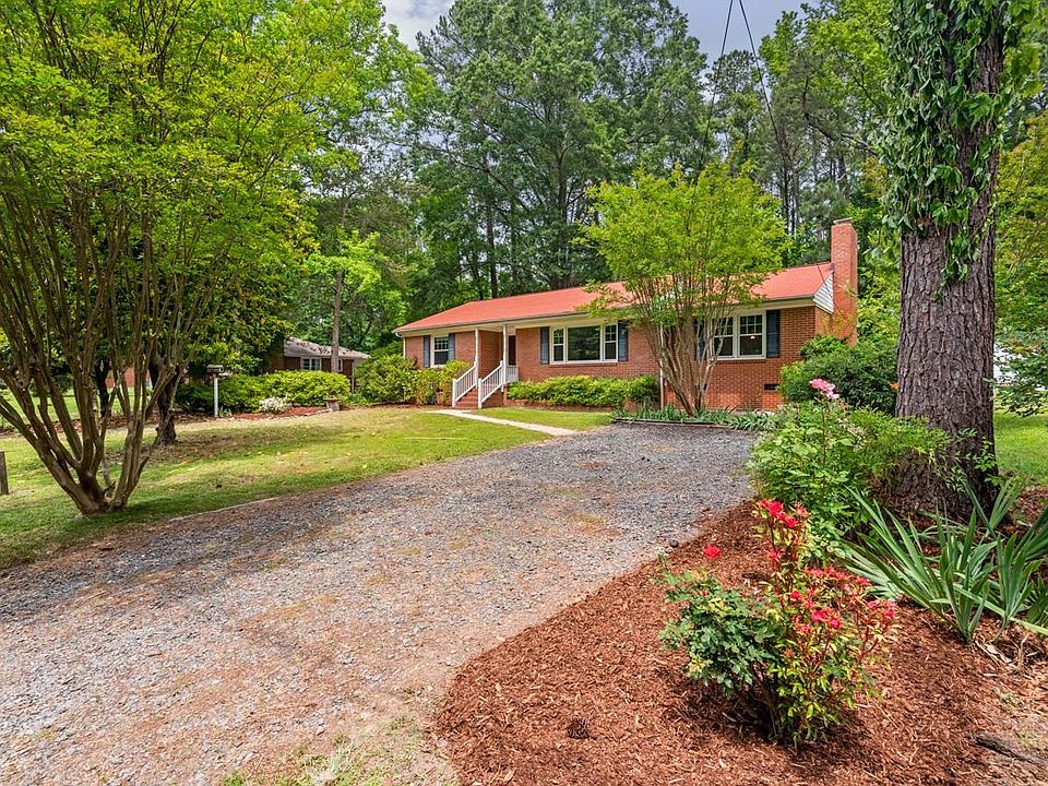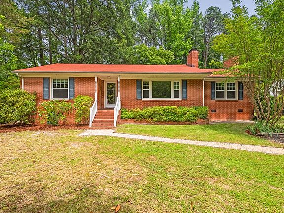 Gorgeous ranch with airy atmosphere, large rooms & large lot with fenced back yard, shed, patio, deck and hardwood trees. Converted carport creates an extra large sun-filled family room w/fireplace & built in shelves. Absolutely stunning 1950s white oak hardwood flooring. Vintage kitchen waiting for new owner to modernize. First floor primary bedroom w/spa-like bathroom and giant garden tub. Oil furnace new in 2022. Minutes to Broad Street & downtown Durham! Duke is only 1.4 miles away, shopping and restaurants around the corner including North Pointe Shopping Center and Costco. NO HOA!