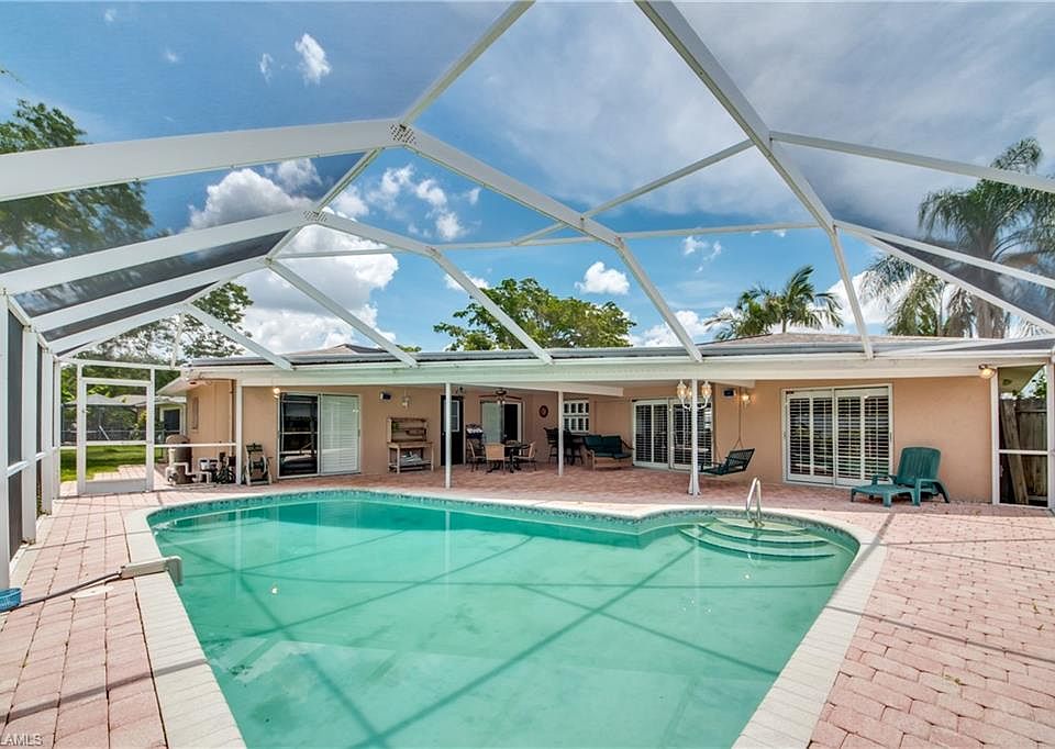 This beautiful and meticulously maintained 4 bedroom POOL home is a must-see! Ask about a one-year home warranty! Located close to everything in Fort Myers in the SAFE and QUIET neighborhood of Pinelake Subdivision, with NO HOA FEES! The sprawling ranch features an open floor plan with beautiful tile floors throughout the living areas, and four separate sets of sliders leading out to the oversized screened-in lanai, where there is plenty of room for lounging by the pool, dining alfresco with family and friends, or curling up on the porch swing with a good book. Plantation shutters, surround sound, and an oversized laundry room with extra storage are just a few of the additional features you will love about this home. This well-maintained property was inspected in September and all minor repairs found have been fixed. This amazing home is ready for its new owners!
