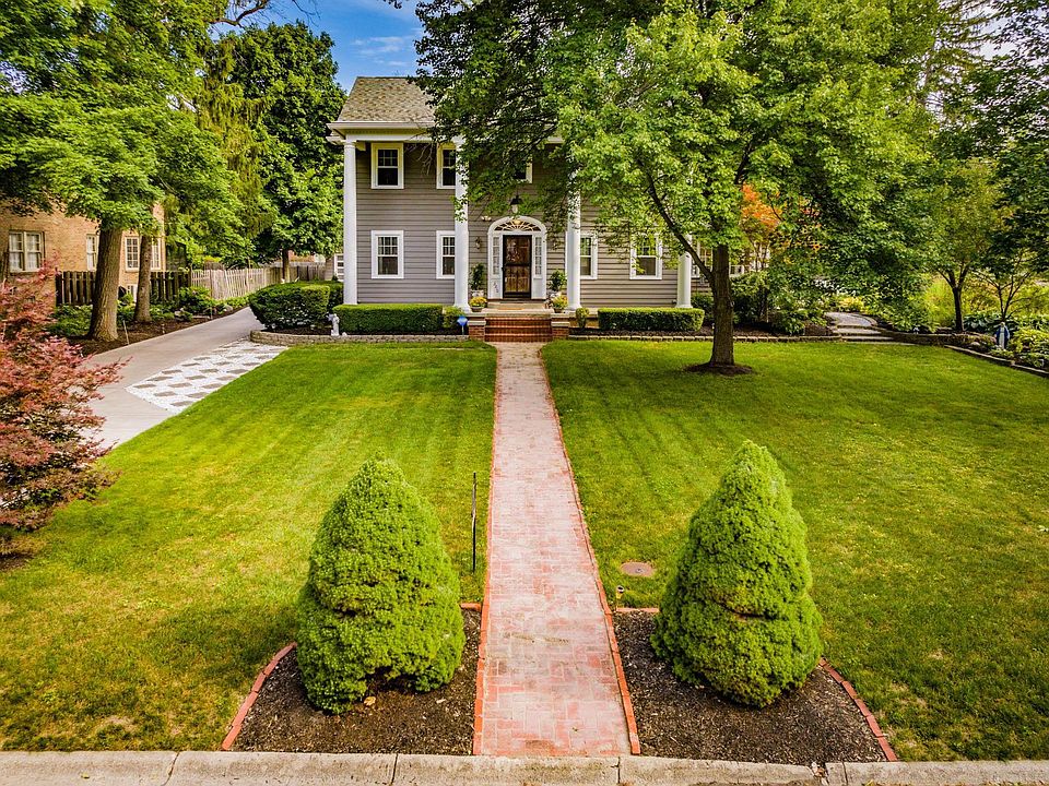 Beautiful home in Historic Westwood! Conveniently located near Bracken House, Christy Woods, art museum, planetarium, and all that campus offers. Long driveway underscores beautiful setback, flanked by fresh landscaping, and colonial style pillars. Entry vestibule leads to large foyer, formal dining room, and huge formal living room with fireplace. Adjoining sunroom with generous built in shelving is perfect for plants and repose. Kitchen has stone countertops, gleaming traditional cabinetry with glass front accents, and island. Powder room and full bath have both been recently updated on main floor. The den has its own fireplace, vaulted wood ceilings, built in bookcases, parquet flooring, and loft accessible by ladder, and two points of access to outdoor living area. Upstairs, there are 3 spacious bedrooms, full bath, and en suite primary bath with large jetted tub, glass wall step in shower, walk in closet, double sink vanity, and stone counters. Walk up attic is finished and would make a wonderful office. Outdoors, there are both covered and open patios, fountain, and playset.