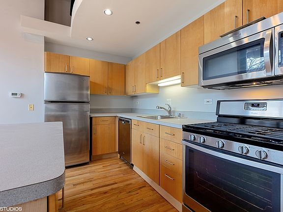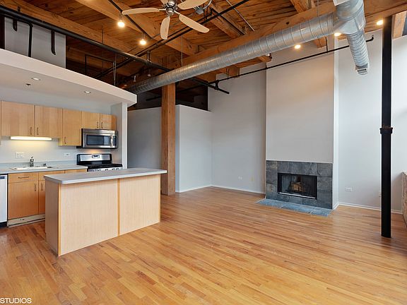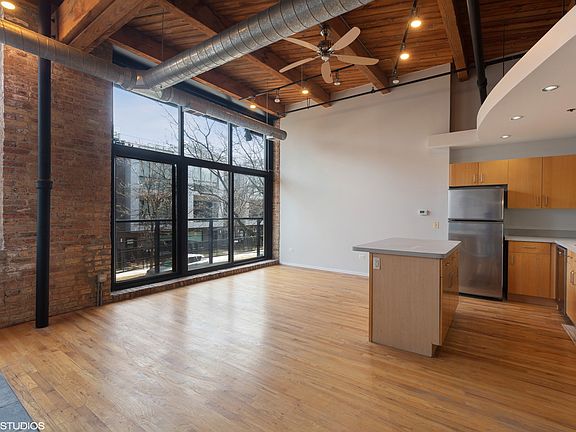 Pinnacle Lofts 2 Bed, 1.5 bath in hot Bucktown! Bright living room/dining room combo with all the best loft features: floor-to-ceiling windows, high-ceilings, timber beam, exposed brick and ductwork! Living room features a Juliet balcony and gas fireplace. Entire unit has been freshly painted; hardwood floors throughout the living areas and bedrooms. Open-concept kitchen with newer stainless steel appliances. Master bedroom offers walk-in closet and full en-suite bathroom with tile-surround shower. Spacious second bedroom with a wall of closet space! Hallway powder room, in-unit laundry and extra storage complete this home. Garage parking included! Walk to the 606, Blue Line, Small Cheval, Margie's Candies, and booming Damen/Milwaukee/North Ave!