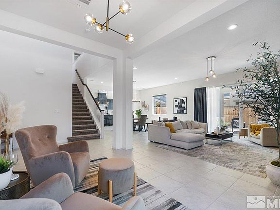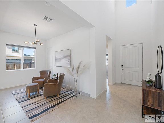 Located in the prestigious Bella Vista Ranch community, this gorgeous Toll Brothers home exudes modern luxury in sought-after South Reno! With 4 bedrooms, 3.5 bathrooms, and a spacious loft, there's plenty of space for comfortable living. The open layout seamlessly connects the living, dining, and kitchen areas for relaxation and entertainment. The stunning kitchen has many upgrades with a gourmet kitchen package to roll out Baxter maple Cabinets, featuring a large Quartz countertop island and, ample storage for cooking enthusiasts. Step outside to your private outdoor space, where a covered patio invites you to relax and enjoy a cozy sitting area. The 3-car garage is equipped with a Tesla 220V wall charger. Positioned right next to the clubhouse, residents enjoy convenient access to top-notch amenities like a kitchen for hosting, a gym, a pool, and a clubhouse, all near parks, and great schools. This home offers an unmatched living experience in Reno, appealing to buyers looking for elegance and convenience.