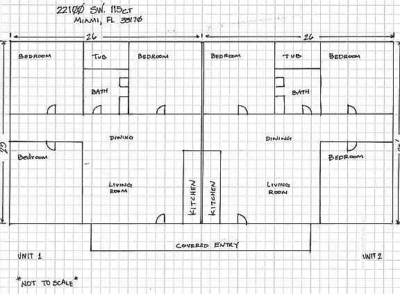 Each unit is 650 sq. ft., containing 3 bedrooms and 1 bathroom.