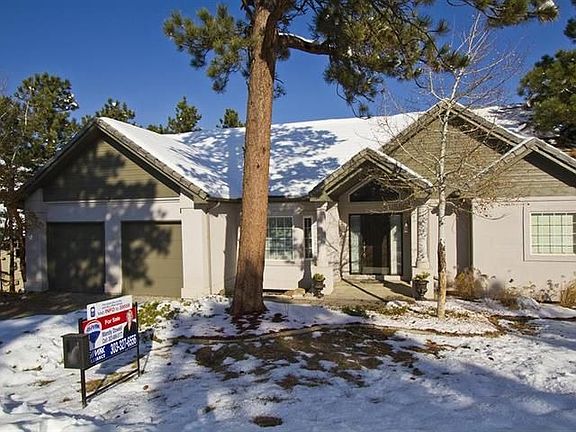 Mountain Living within 20 mins to Downtown Denver!! Beautifully updated mountain home located in the highly desirable Riva Chase gated community. Tucked among the pines, and conveniently located 10 minutes from Downtown Golden and 20 minutes from Downtown Denver, this 4-bed 4-bath home with Main-floor Master bedroom welcomes you in with vaulted ceilings, new hardwood floors, and new carpeting in the living area. The open gourmet kitchen has cherry wood cabinets, custom granite counter tops, and stainless-steel appliances. The main floor also features a formal dining area as well as a stunning master suite with a fireplace, new carpeting, a newly remodeled over-sized ensuite, plus updated decking outside the master with hot tub. Downstairs boasts new luxury vinyl waterproof flooring with additional underlayment for walking comfort, a family living room with a customized fireplace, two guest bedrooms connected by a Jack and Jill bath, and an additional room, and a bonus office/recreation space with an added built-in fireplace. Your home also features an oversized two-car garage offering plenty of storage, updated decks and railings, gas hookup for grilling, and the entire front patio was recently built out, including a brand-new mailbox enclosure. In addition, enjoy air conditioning in those warm summer months, a newly installed Pelican water system, Gutter Covers as well as the convenience of an outside whole-house backup generator.