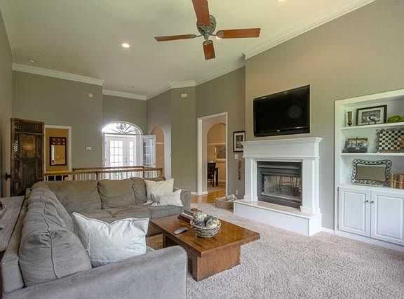 - Features: Built-in Features, Carpet, Ceiling Fan(s), Fireplace