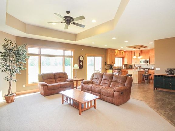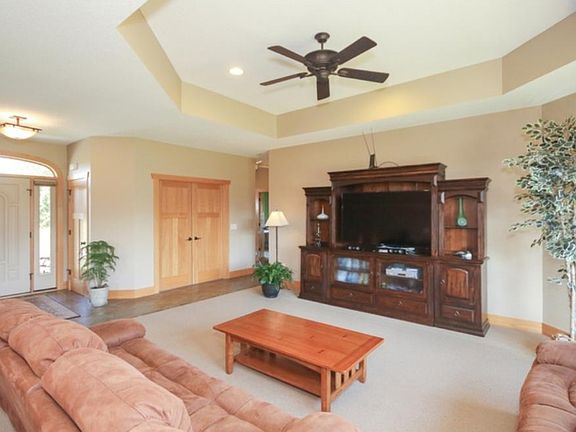 Beautiful custom built one owner home on 4+ acres. Custom oak mission style cabinetry, granite counters, corner pantry, solid 3 panel doors, oversized base & casing, Marvin windows, 9 ft ceilings, knock down, recessed lighting, ready for horses, LL finished but needs flooring, fireplace finishing & bar area.